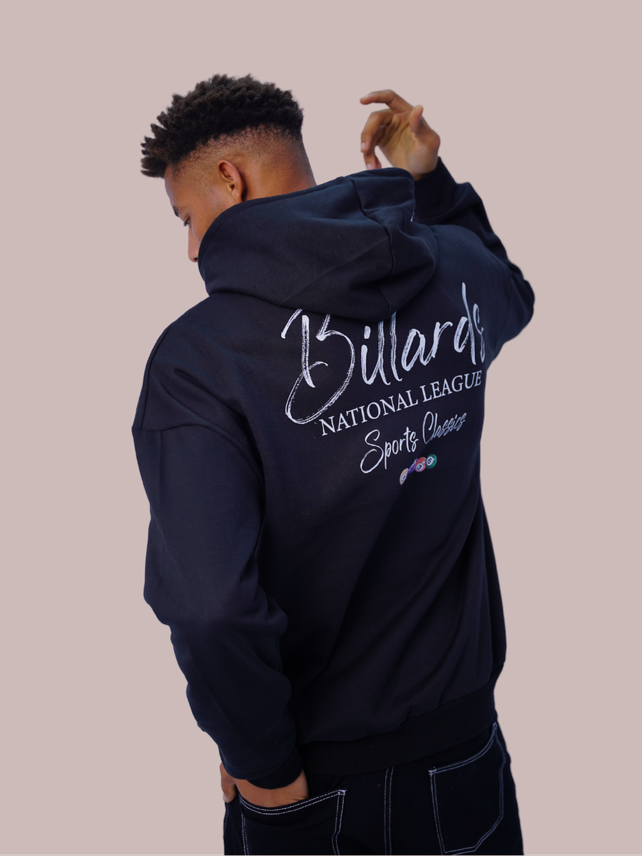 À l’avant, le logo « Billards National League » est brodé avec une typographie élégante, ajoutant une touche sophistiquée.